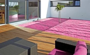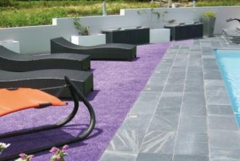 Græstæppe i lilla kunstgræs – udendørs gulvtæppe i plastic